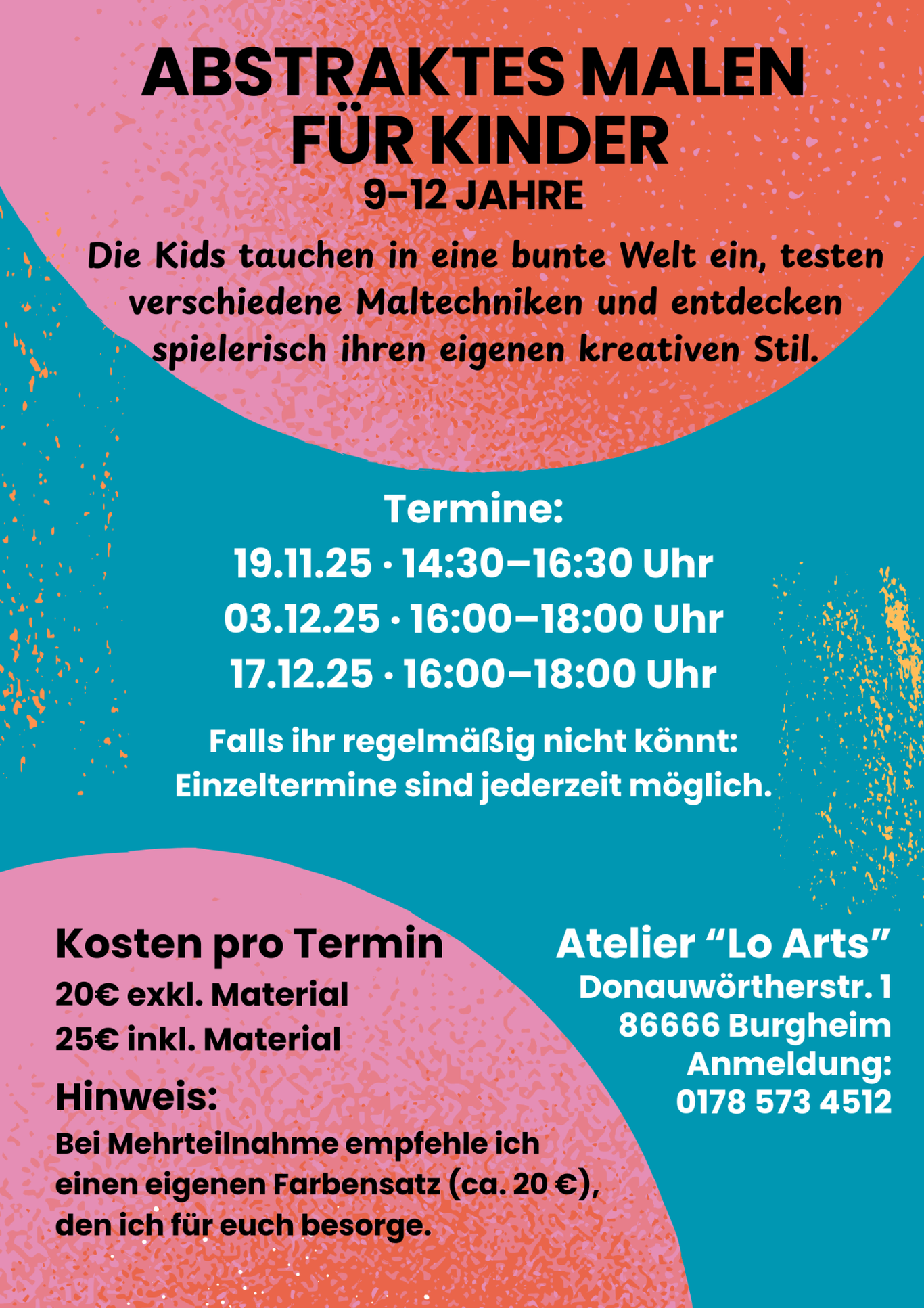 Da die Kinder und ich so viel Freude am Malen im Atelier haben, findet mein Malkurs für 9–12-Jährige ab jetzt alle 2 Wochen statt!