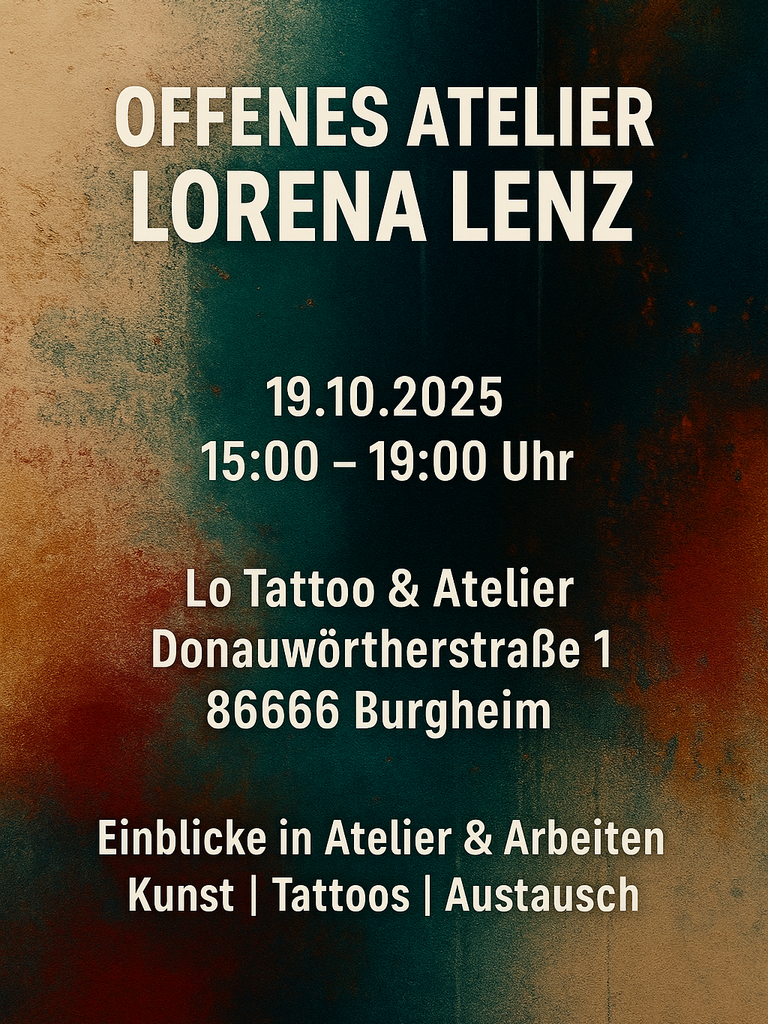 Am Sonntag, 19.10. 2025 findet von 15:00-19:00 mein zweites offenes Atelier statt. Hier ist Zeit und Raum, mich und meine Räumlichkeiten in entspannter Umgebung kennenzulernen.